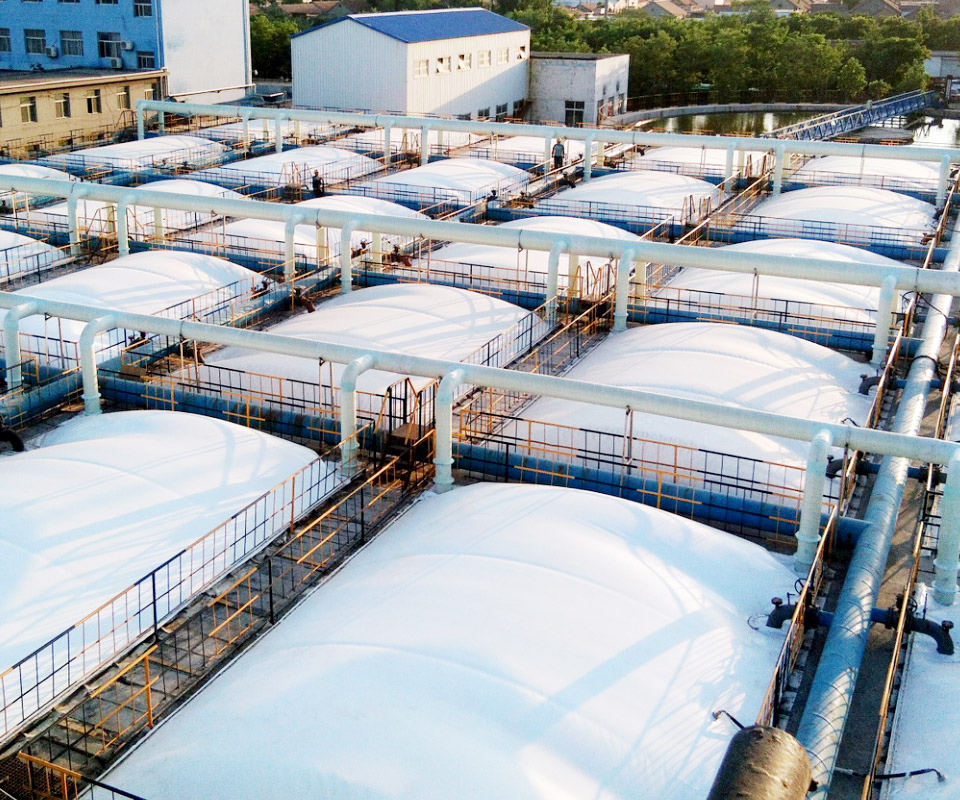 降低運(yùn)營(yíng)成本:雙膜密封罩可防止工業(yè)水曝氣池加蓋后,夏季水溫升高,危及微生物生存環(huán)境;亦可用于市政污水冬季保溫,降低水處理費(fèi)用。
